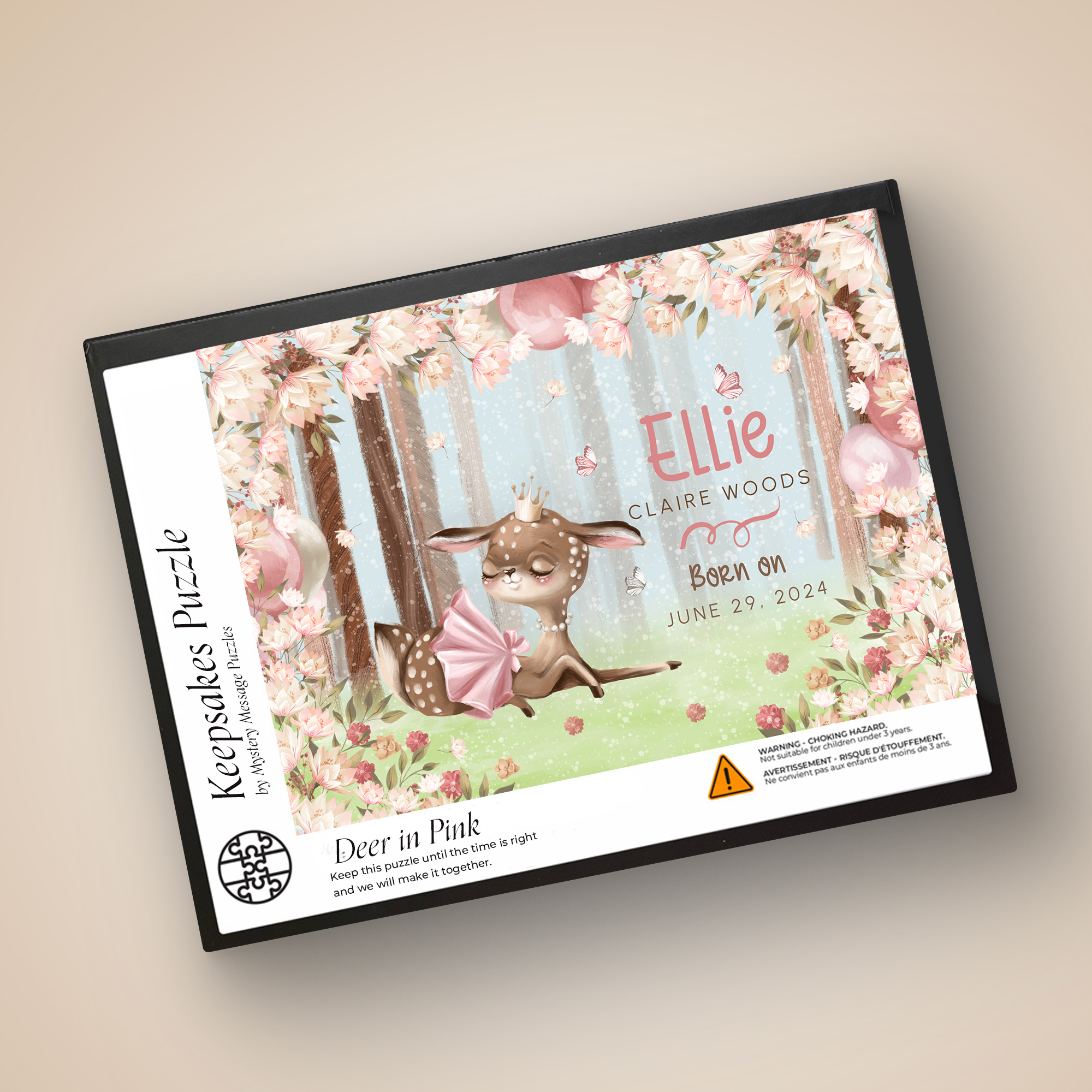 Cherish your little one’s big moments forever with a Deer in Pink Keepsakes puzzle. More than a trinket, a Keepsakes puzzle is a gift that is meant to be kept and made when the child is old enough to enjoy the experience. Now you will always be able to celebrate your little one’s treasured moments while enjoying some time together doing an activity.