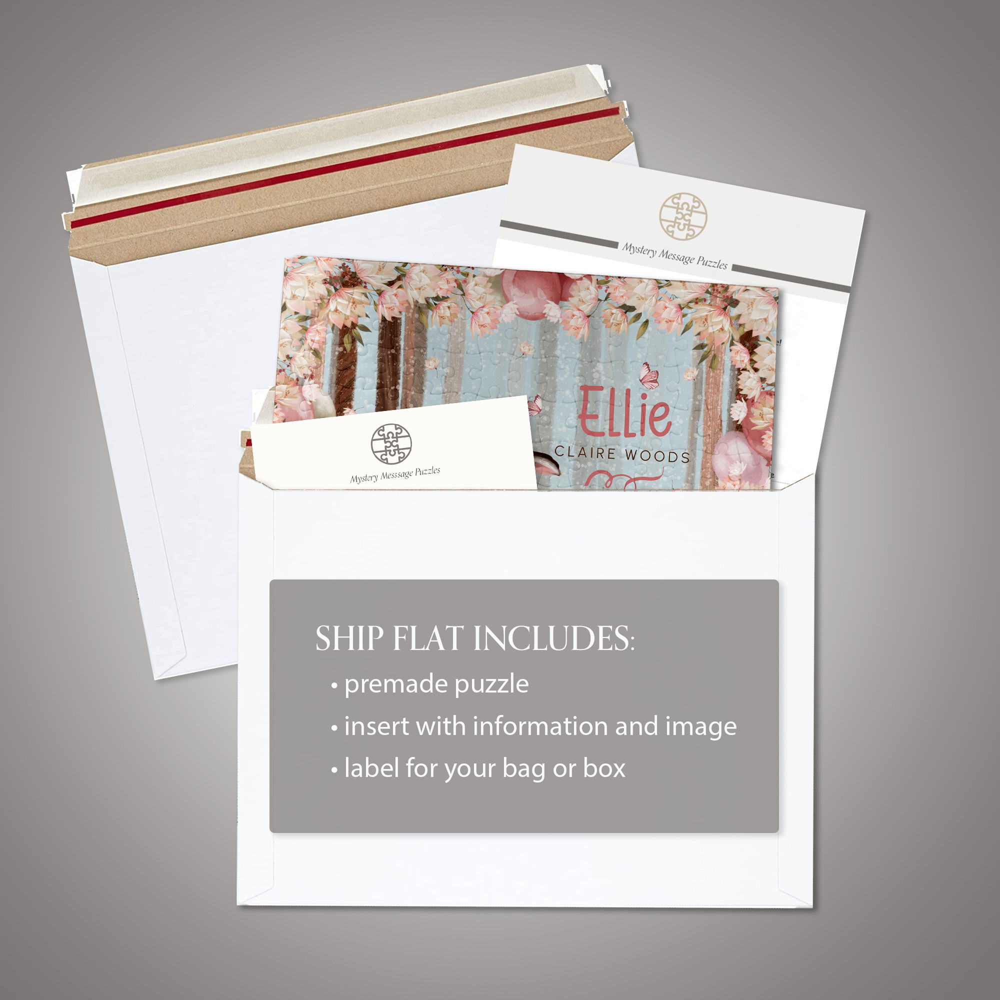 This Deer in Pink Keepsakes puzzle comes in a magnetic close box for beautiful and lasting storage. You can save 20% by choosing the Ship Flat option. If you have a bag or box you’d like to use Ship Flat does not include a box but comes with a label for you to use. It’s a truly special gift to make and remake for years to come.