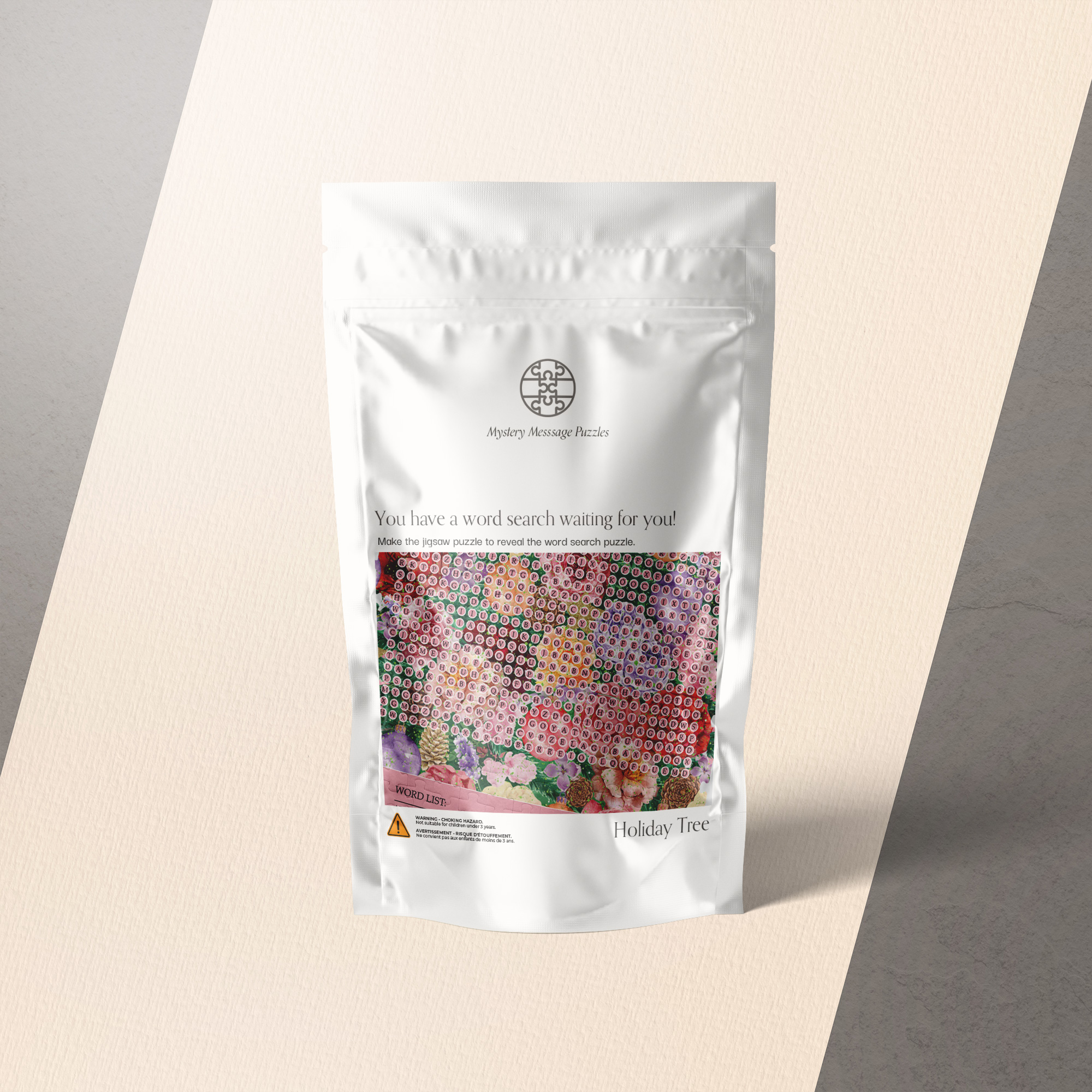 Holiday Tree word search puzzle is the perfect gift for those who love the holidays. The first step is to make the jigsaw puzzle which reveals the word search puzzle. You can choose the words that are hidden in the word search to personalize it (like adding grandkids names, activities, etc for grandma) or to provide clues of a different gift (use words like plane, ship etc for a cruise). See below for some ideas.