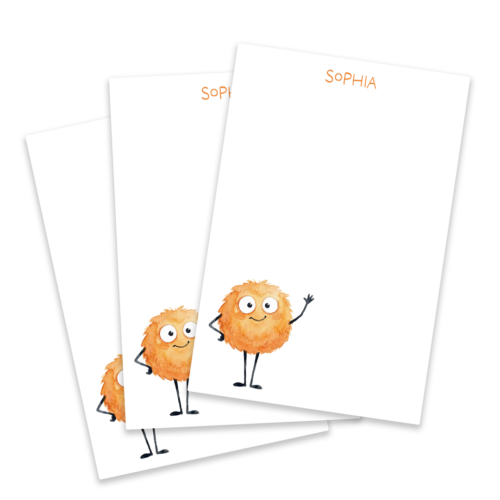Each sheet features a mighty (but friendly) T-Rex holding a giant pencil in its tiny arms, ready to help with homework, doodles, thank-you notes, or secret messages. Your child’s name appears in bold, playful letters—customized just for them! Bright, kid-tough colors (think jungle green, lava orange, electric blue) that pop without being too loud for teachers.