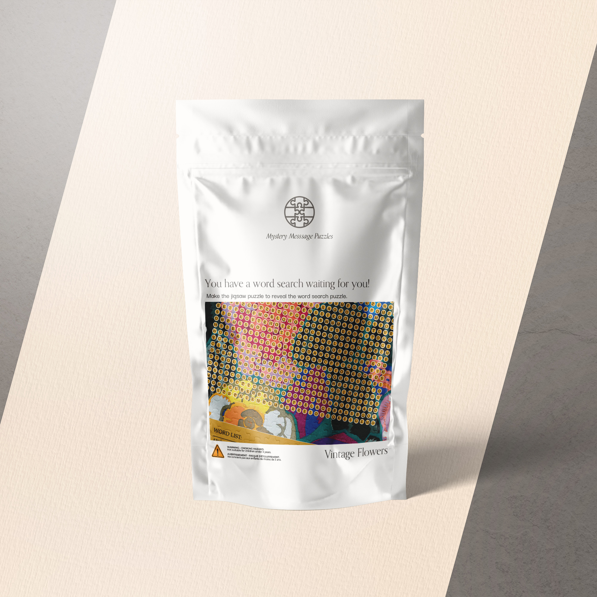 Vintage Flowers word search puzzle is the perfect gift for puzzle and cat enthusiasts alike. The first step is to make the jigsaw puzzle which reveals the word search puzzle. You can choose the words that are hidden in the word search to personalize it (like adding grandkids names, activities, etc for grandma) or to provide clues of a different gift (use words like plane, ship etc for a cruise). See below for some ideas.